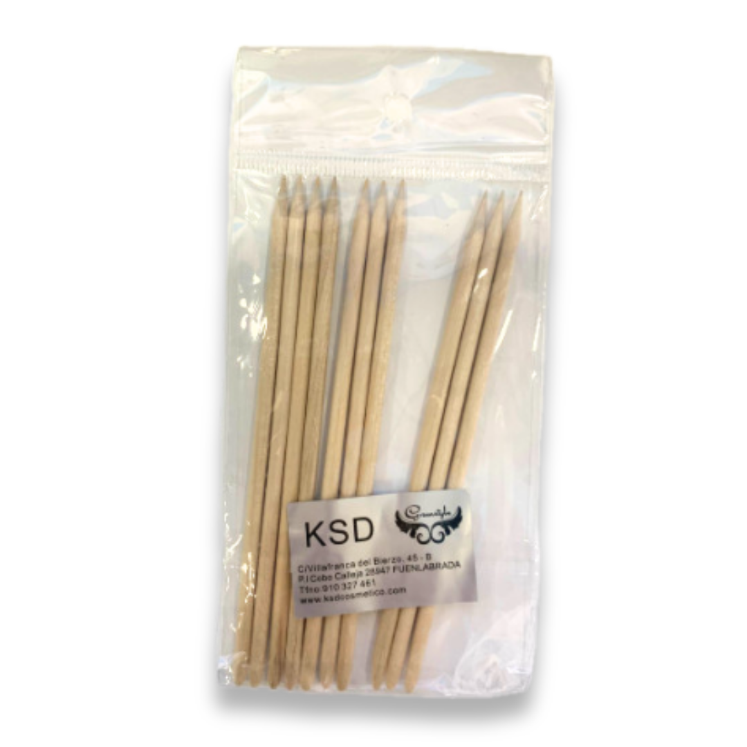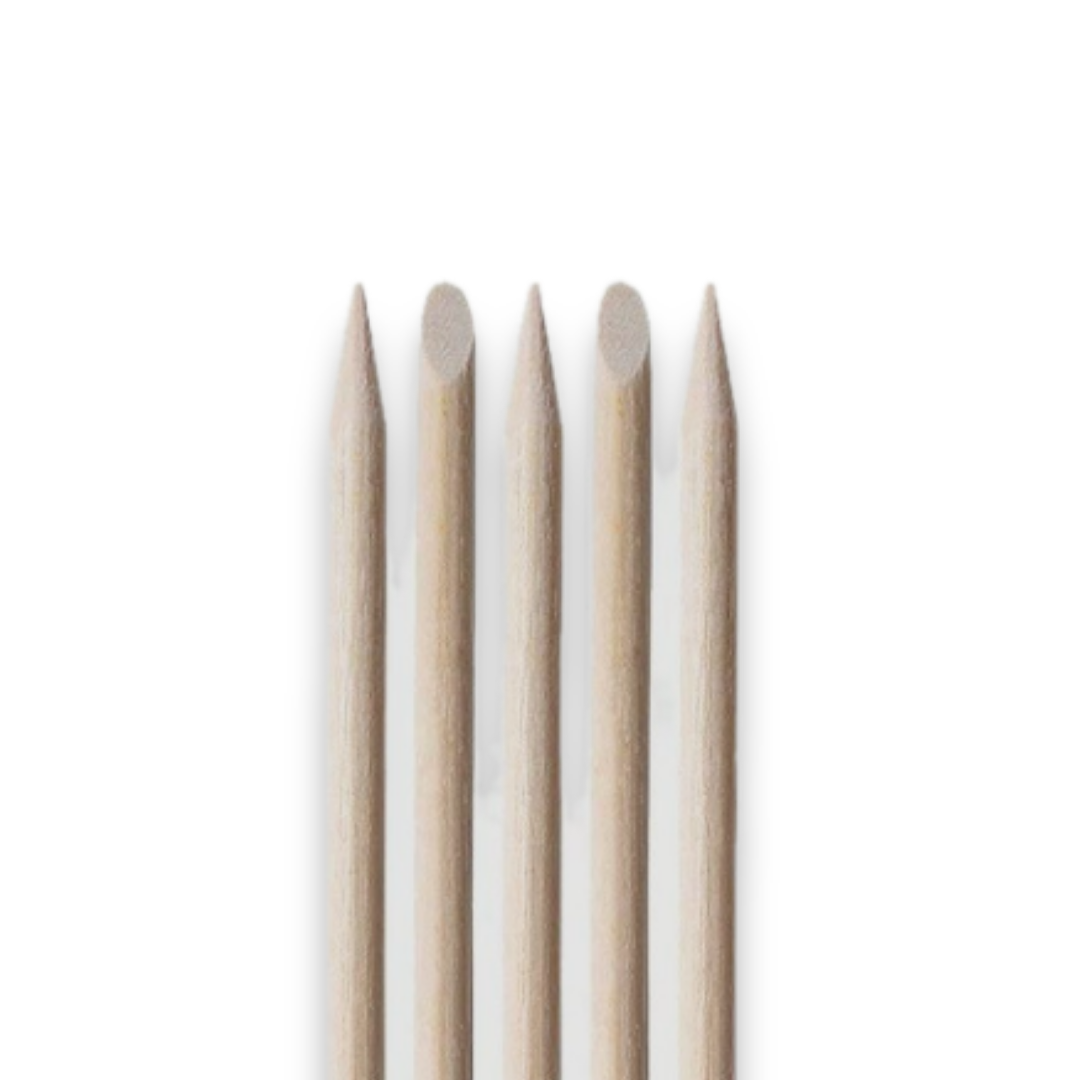 Palitos de naranjo fabricados de madera. Con nuestro kit de palitos podrás empujar la cutícula hacia atrás y además te ayudarán al colocar decoraciones.